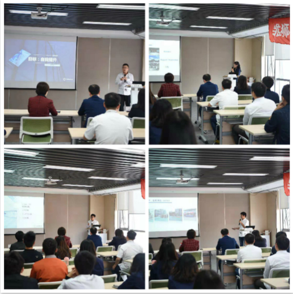 Growth-themed reports are addressed by group representatives. The trainees reported their work experience in three months from multiple perspectives, such as waiting for client to sign paper for nearly 4 hours, overcome the inconvenient traffic, staying up late to write programming to meet customer requirements. All those experiences allow us to grow up and get exercised. According to the trainees' comprehensive scores in each link, Shang Yanjiao, Chen Xuesong, Luo Ye, Zhang Jinsheng and Zhang Fudong was selected as up-and-coming youngsters by the enterprise university.