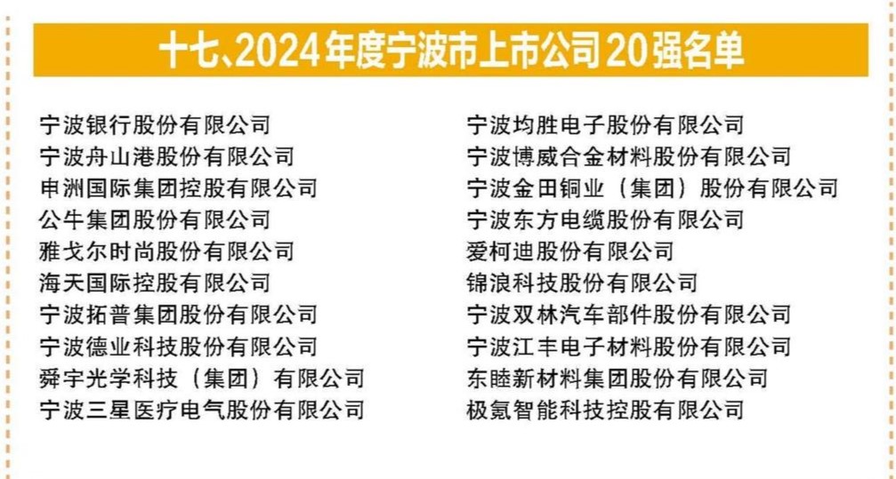 双林股份荣登“2024宁波上市公司20强”榜单
